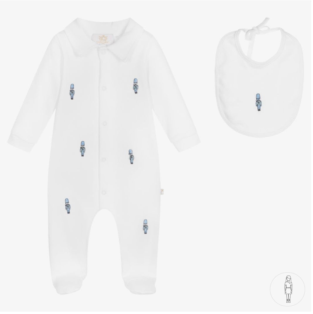 Caramelo Kids Baby Boy White Babygrow & Bib Set