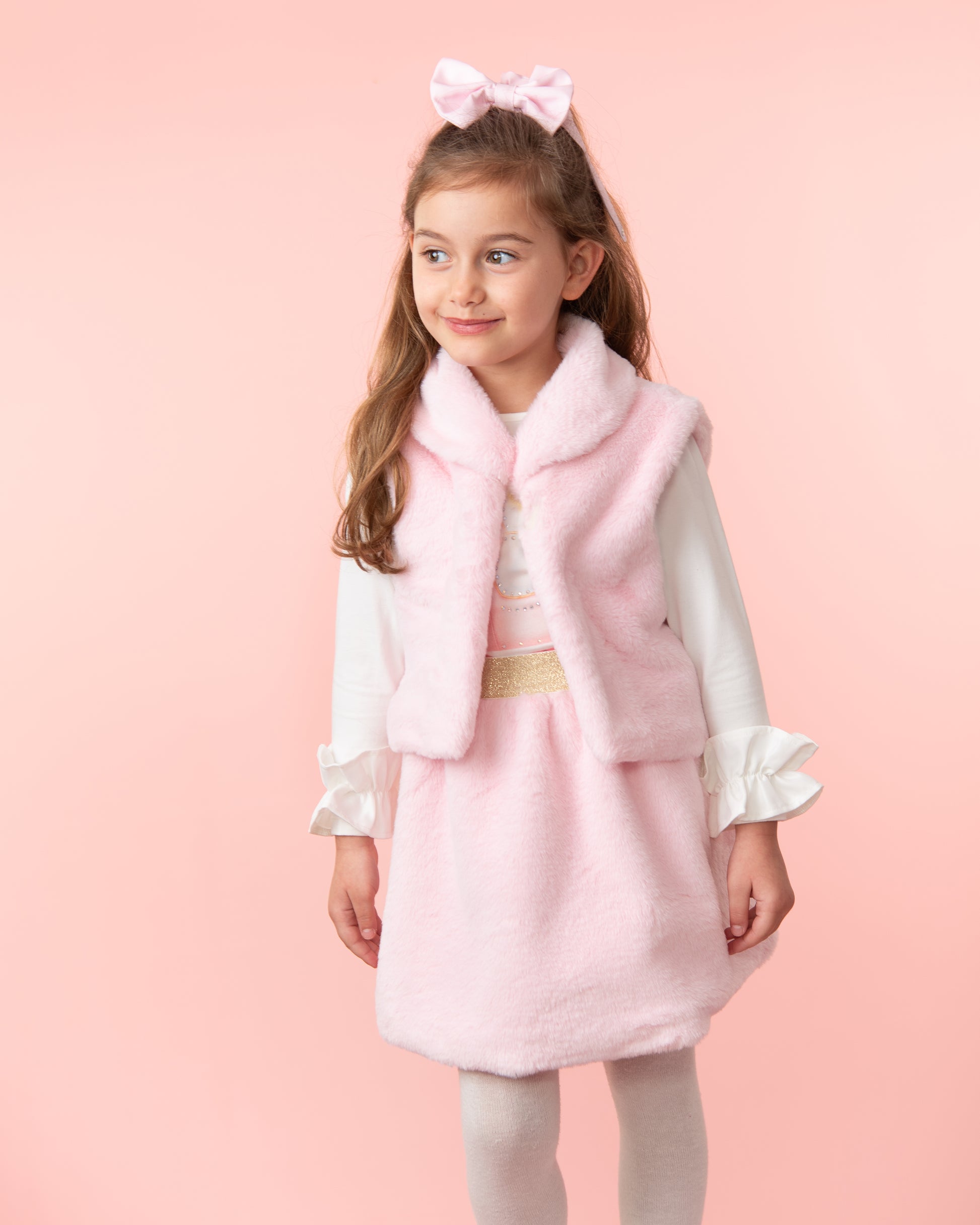 Caramelo Kids Girls Pink 3 Piece Faux Fur Skirt Set