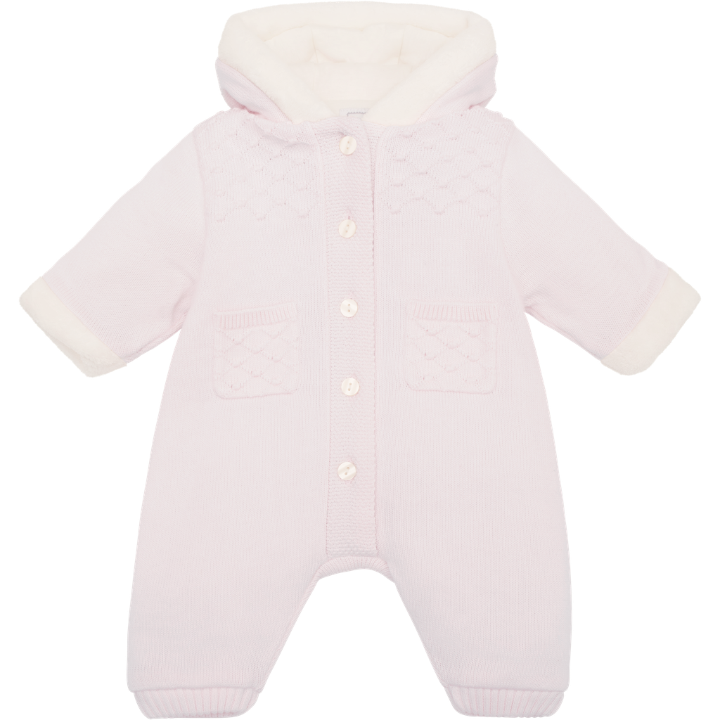 Emile et Rose Kristen Baby Girl Pink Knit Hooded Pramsuit
